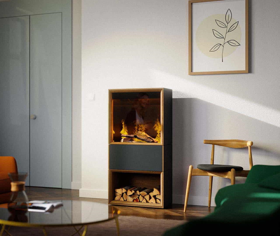 Für den Flammeneffekt wird Wasser per Ultraschall fein vernebelt und durch einen warmen Luftstrom nach oben geleitet. Sparsame LEDs strahlen den Wasserdampf dabei von unten an. Das Ergebnis ist ein täuschend echtes und dennoch völlig harmloses Flammenbild. Noch realistischer wird der Effekt in Kombination mit täuschend echten Holzscheiten aus Keramik, die die Flammen zusätzlich verwirbeln.